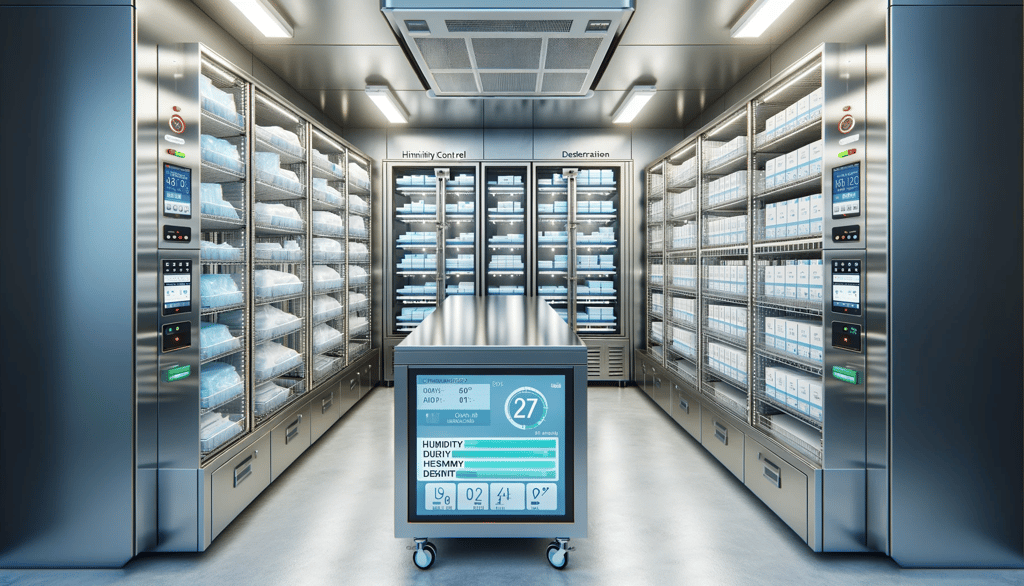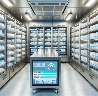 การควบคุมความชื้นถือเป็นสิ่งสำคัญในการยับยั้งการเจริญเติบโตของจุลินทรีย์ ระดับความชื้นสูงทำให้เกิดสภาพแวดล้อมที่เอื้อต่อการแพร่กระจายของแบคทีเรีย เชื้อรา และไวรัส จุลินทรีย์เหล่านี้สามารถส่งผลต่อความปลอดเชื้อของสภาพแวดล้อมในการจัดเก็บและอุปกรณ์ทางการแพทย์ได้ ด้วยการรักษาระดับความชื้นที่เหมาะสม ตามคำแนะนำในแนวทางและมาตรฐานต่างๆ โดยทั่วไปจะต้องรักษาความชื้นให้ได้อยู่ระหว่าง 30% ถึง 60% ซึ่งจะช่วยทำให้ความเสี่ยงของการปนเปื้อนของจุลินทรีย์จะลดลงอย่างมาก จึงจะมั่นใจได้ถึงความปลอดเชื้อของอุปกรณ์ทางการแพทย์ที่เก็บไว้